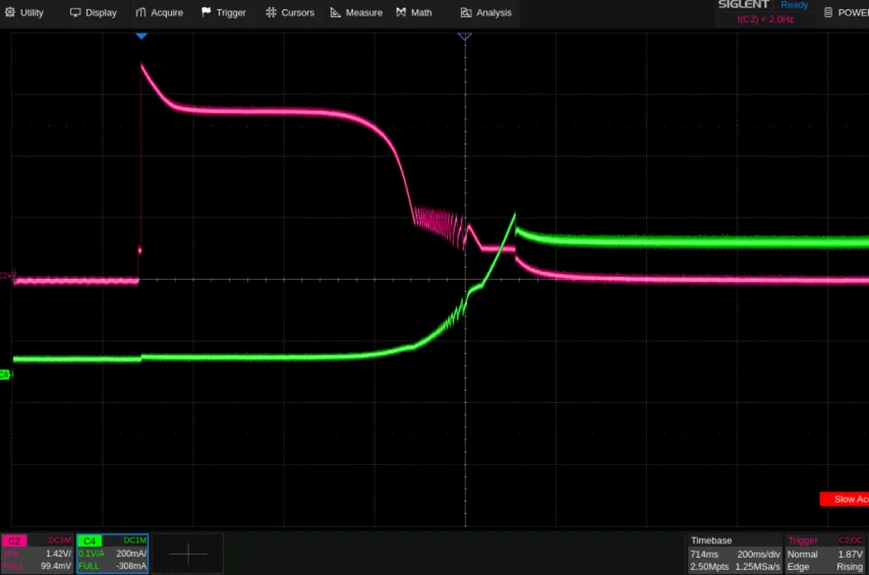 在测试中,需要两个脉宽不同的电压脉冲。第一个脉冲用于建立初始状态,预热电路使电路中的其他元件达到相对稳定的工作温度,减少温度变化对测试结果的影响,同时为电路中的电感建立一定的电流,为第二个脉冲的测试创造条件。