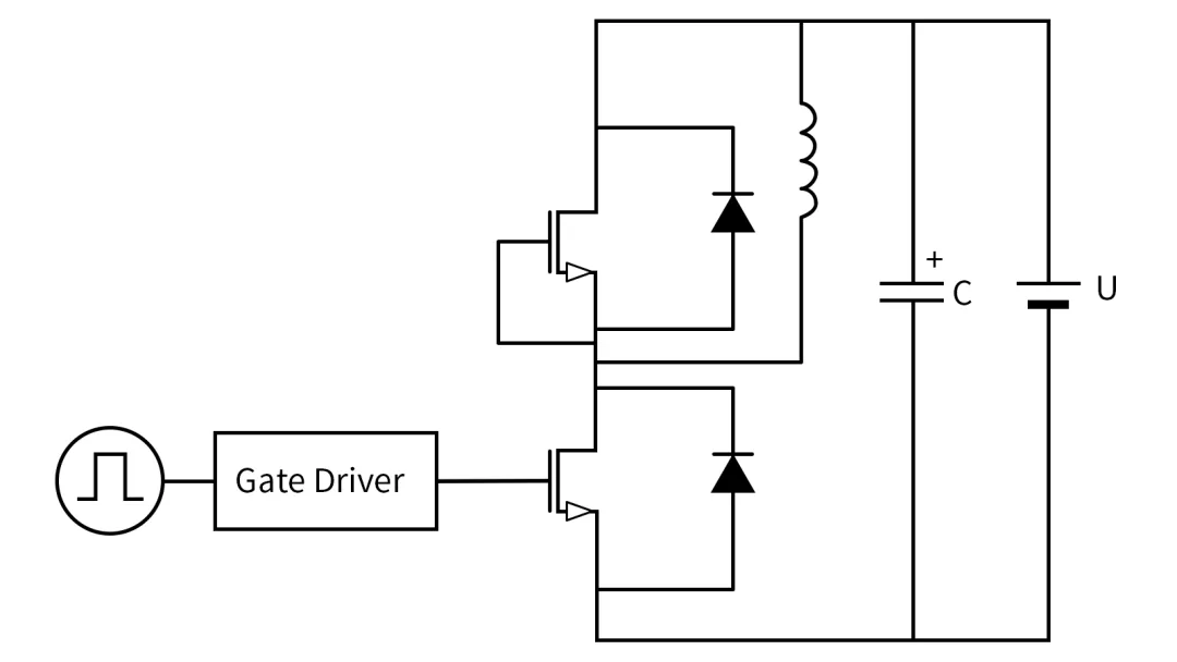 第二个脉冲用于测试功率器件的动态特性,此时利用示波器和差分探头测试器件开关时的电压和电流参数,在第一个脉冲的下降沿观测功率器件的关断过程,第二个脉冲的上升沿观测开通的过程,简化的双脉冲测试电路如图1所示。