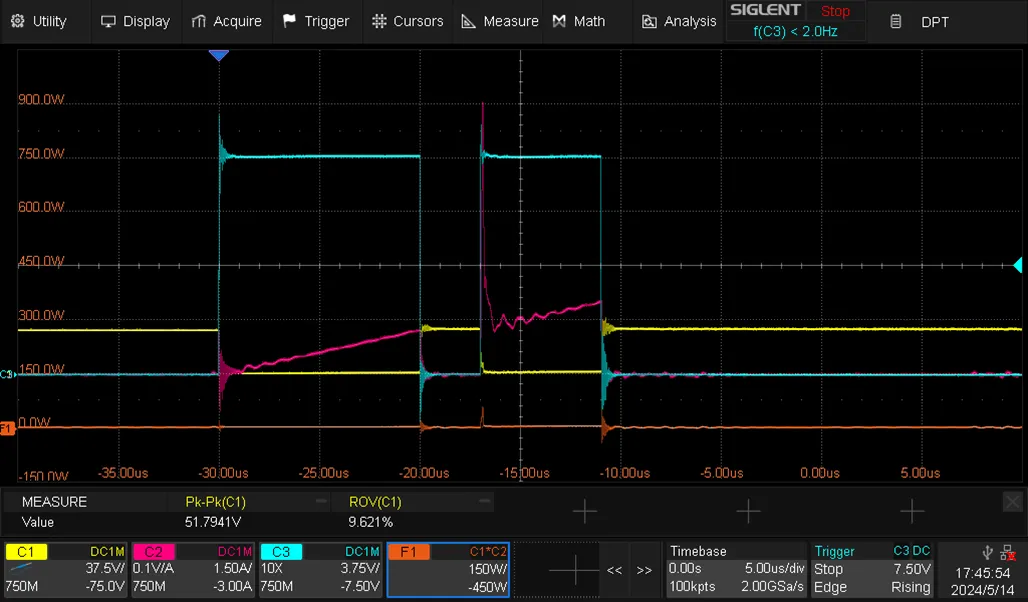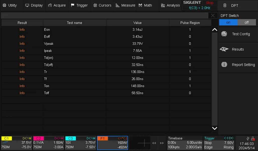 同时,在示波器中提供DPT双脉冲测试应用,能够对双脉冲测试中的参数进行便捷测试,减少测试时间并提供直观的测试结果报告。
