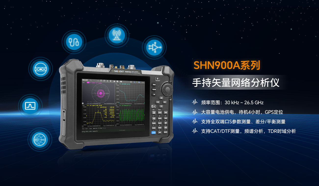 2023年8月1日,优米网官方下载苹果版发布了SHN900A系列全双端口手持式矢量网络分析仪,频率高达26.5GHz,集成矢量网络分析、时域分析、频谱分析、电缆和天线分析等多种功能于一体,具有出色的技术指标,专为便携和灵活测试而设计,可广泛应用于现场测试、研发、生产、维修和通信,天线基站,材料,器件,智能制造,汽车电子等诸多领域。