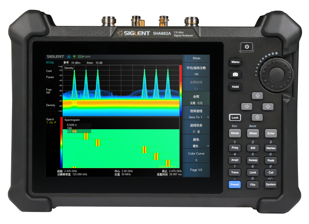 SHA860A的 IQ 数据采集功能拥有300 MHz采样率,100 MHz信号带宽,其高精度、高速度、高可靠性可以捕捉频谱仪输入的模拟信号并转换为频谱数据,不仅能帮助用户记录和显示频谱数据,还可以将数据存储到本地或USB,具有极佳的灵活性。