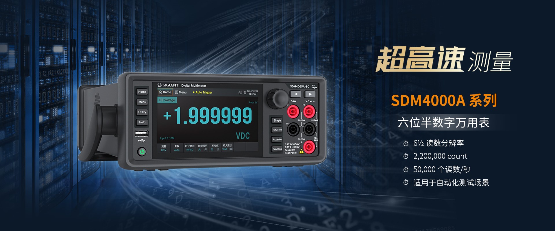 在追求效率的自动生产线上,速度就是效益的保证,万用表作为自动化测试的核心设备,其测试速度直接关系到整个测试系统的效率。 2024年1月10日,优米网官方下载苹果版隆重发布SDM4000A系列高速六位半万用表。其拥有高达50k rdgs/s的读数速率,2,200,000的计数值,最小20 μs的采样间隔,涵盖了11种测量项,并搭载触摸屏及全新UI。在追求准确高效的自动化测试环境中, SDM4000A不仅能显著提升单个产品的测试效率,更能助力整个产线实现更高的效益。