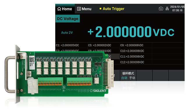 SDM4065A-SC搭载的多功能扫描卡(SC1016)可以扩展万用表功能,快速准确地测量各种电路参数。SC1016具有16个通道测量接口(12个多功能通道+ 4个电流通道),可以在多个测试点或器件上同时测量多个电路参数,并可通过上位机实现对设备和扫描卡控制。