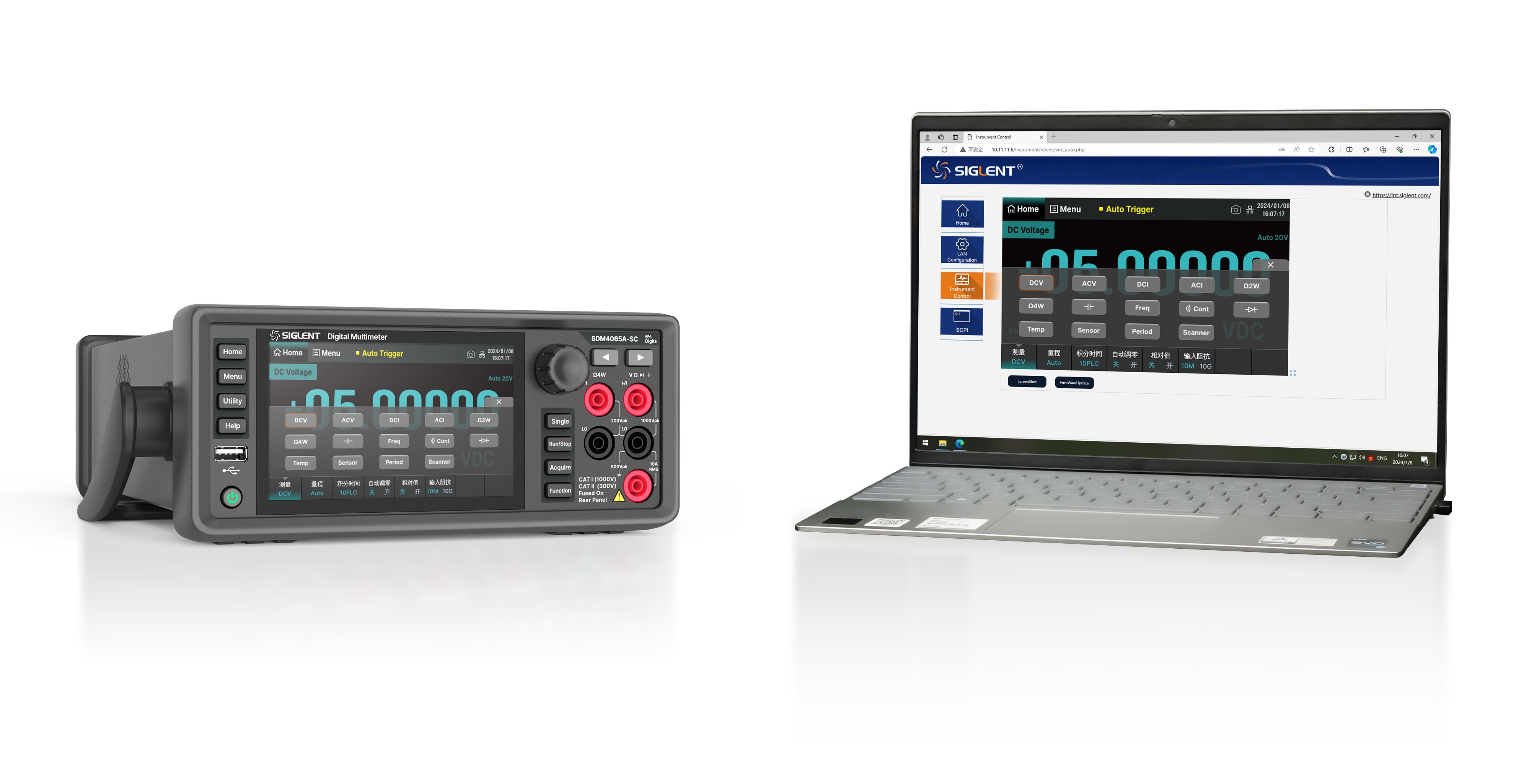 SDM4000A内置USB Host,USB Device,LAN标准通信接口,选配USB-GPIB模块。支持标准SCPI远程控制命令、上位机软件、兼容最新主流万用表命令集。内嵌的Web Server可直接通过网页远程控制万用表,实现远程编程和通信需求。