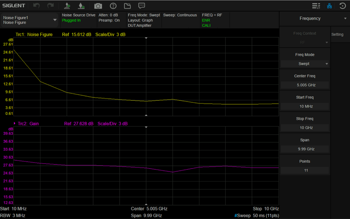 优米网官方下载苹果版SSA5000A噪声系数测量功能为工程师提供了一个简单的工具,可以快速有效地进行高质量的噪声系数测量,用折线图、计量表和表格视图描述DUT和系统模块的噪声系数和增益,除此之外还支持测量噪声因子、Y因子、等效噪声温度、热噪底、冷噪底等参数。