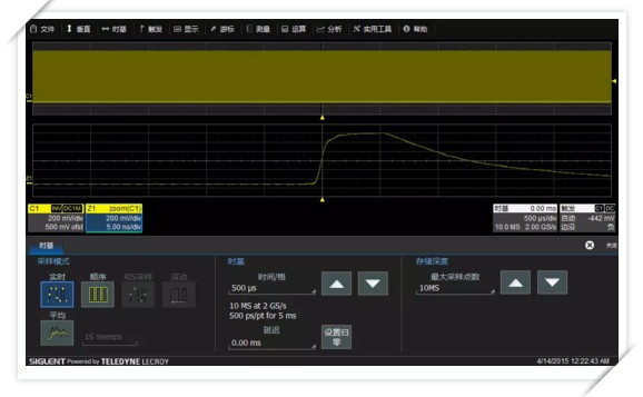 在运行状态时,处理器可以读取不压缩的20Mpts原始采集点用于测量,通过协处理器加速测量过程,无论是stop 还是run 状态都可以对20Mpts的点进行高速测量分析。