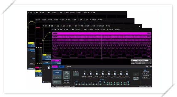SDS3000X 集成了多种仪器功能,包括25MHz 的函数/ 任意波形发生器、串行协议分析仪、16 通道的逻辑分析仪、数字电压表和硬件频率计,用户可根据实际需求来选择不同的配置。