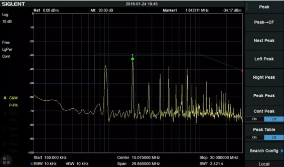 SVA1000X选配遵循CISPR 标准的EMI滤波器以及准峰值检波器,配合近场探头(SRF5030或SRF5030T),可以支持EMI预兼容测试。使得在产品研发设计的各个阶段中都可以尽早发现并解决各个级别的电磁兼容问题,提升产品的工程质量,避免耗时耗力的返工整改。