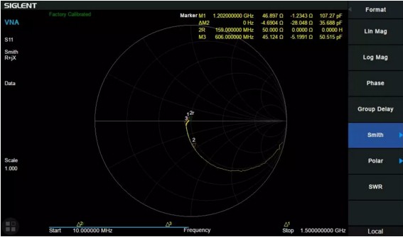 传统的频谱分析仪和跟踪源配合,只能进行标量网络分析。SVA1000X内置跟踪源和反射电桥,能够同时扫描幅度和相位,成为国内首款集频谱分析仪与矢量网络分析仪为一体的仪器,可对射频电路网络进行矢量S11和S21测量,并以史密斯圆图、极坐标等方式更精确的显示射频电路网络特征。