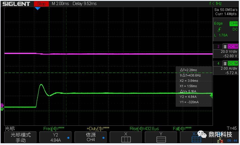 CV模式下可以快速稳定设置电压,从而测试出电源的快速输出能力。如瞬时功率超过保护设定值,会进入打嗝保护状态。