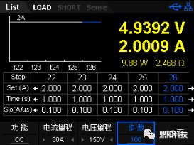 通过编辑单步的设置值、持续时间和斜率(仅CC模式下),List功能可以生成多种复杂的序列,以满足复杂的测试需求。List功能支持100步编辑,program功能支持50组程序编程。