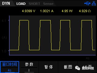 电子负载提供波形显示功能,并支持对波形进行暂停、记录和截图等操作,方便用户通过动态波形来观察参数的变化趋势。