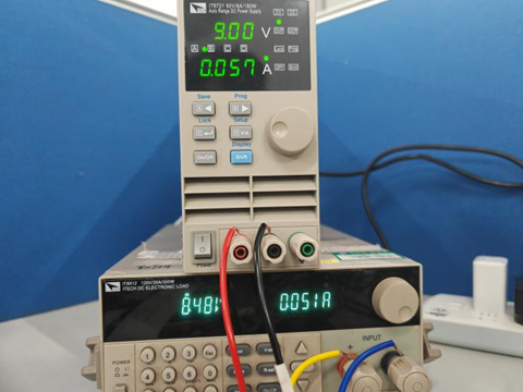 左图:鼎阳示波器读得电流均方根值247.7803mA;右图:电源和负载电流为0.057A