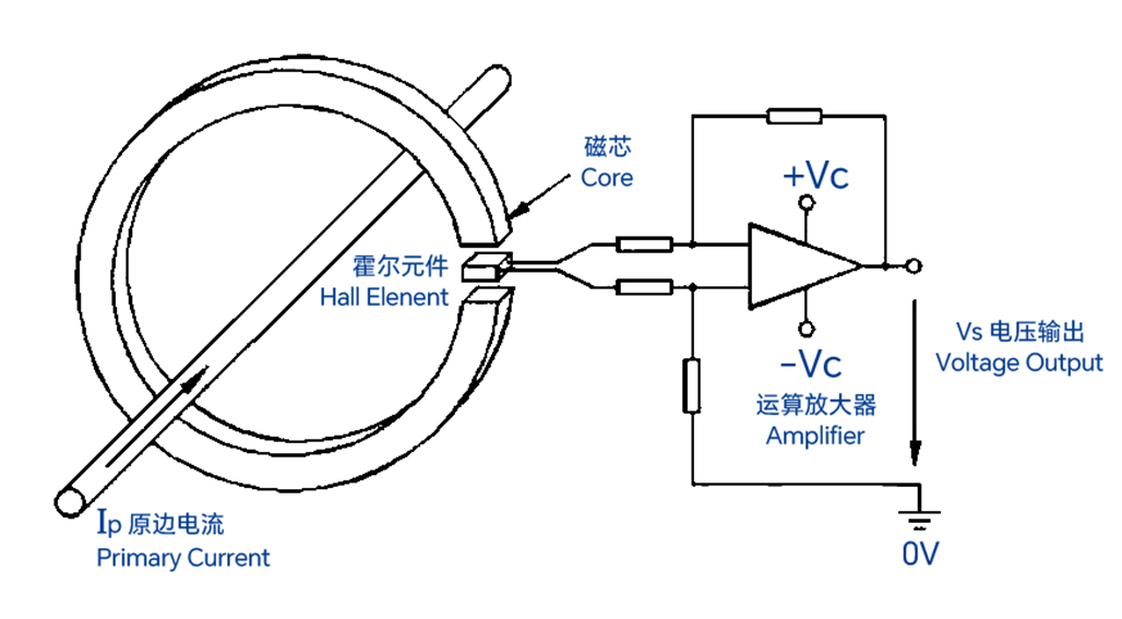 电流探头是基于霍尔器件进行探测的方式。流经导线的电流会在导线周围形成电磁通量场, 而示波器电流探头测量电子在导线内运动时生成的磁场,通过霍尔检测磁场的变化,把磁场转换成相应的电压信号,通过和实时示波器配合,得到对应的电流波形。