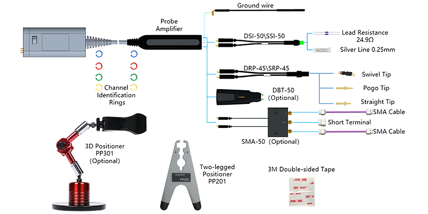 SAP5000D有源差分探头配件包,配件包含:焊接探头头部DSI-50*1,引线电阻*20,银线*1。