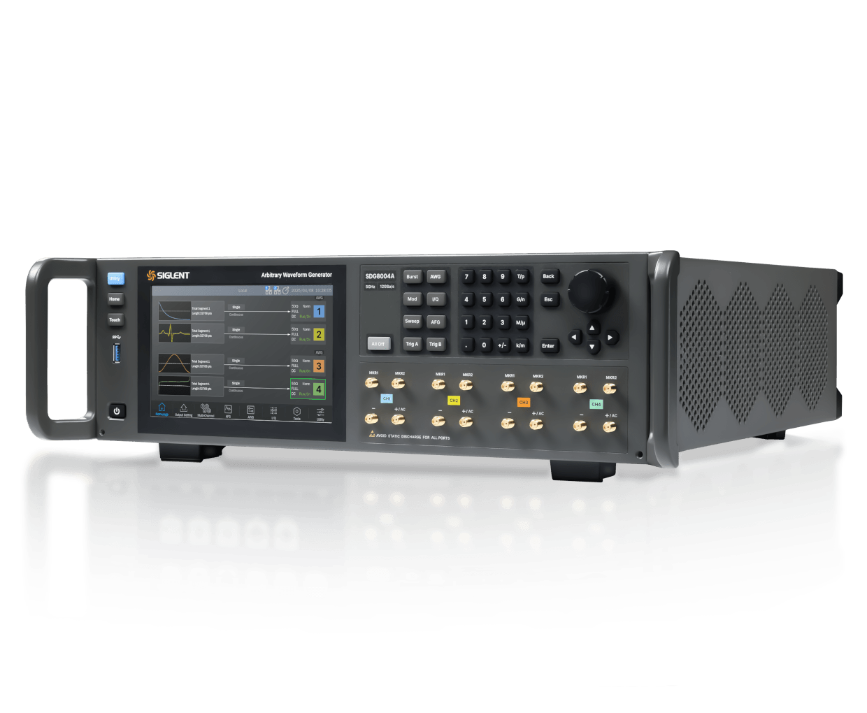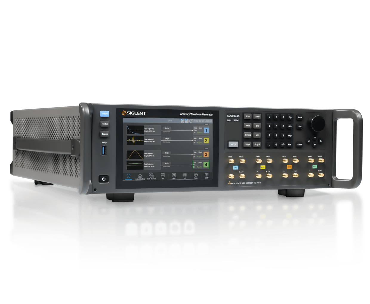 SDG8000A系列函数 / 任意波形发生器,最大4个模拟输出通道,具备16-bit 垂直分辨率,最高12 GSa/s(内插)采样率,输出频率可达5 GHz,最大调制带宽可达2GHz。每通道最大4G样本点存储空间,无需牺牲信号带宽,提供更长的播放时间。配合SigIQPro还可提供蓝牙、WIFI、LTE等通讯信号波形输出。此外,SDG8000A还提供高速串行码型信号输出,支持复杂的多层级序列波输出,双脉冲、多音以及线性调频的功能,满足通讯、工业和科研领域广泛的测试需求