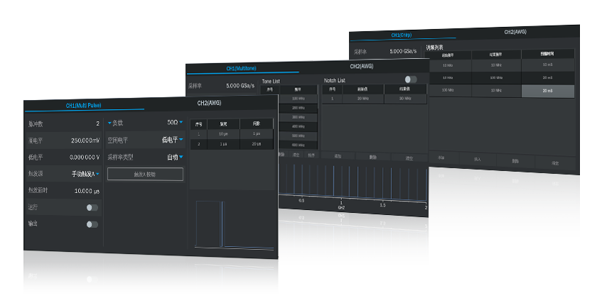 - 2/4通道,最高输出频率4 GHz(10 GSa/s采样率)/ 5 GHz(12 GSa/s采样率)