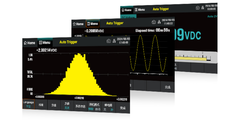 SDM4055A支持四种显示模式,数字显示模式可对测量结果一目了然;直方图可快速识别数据分布特性;趋势图可清晰观察数据的变化规律,预测数据走向;条形图可快速分析出不同条件下的变化和规律。高效满足用户的视觉需求和数据分析习惯,深入洞察数据