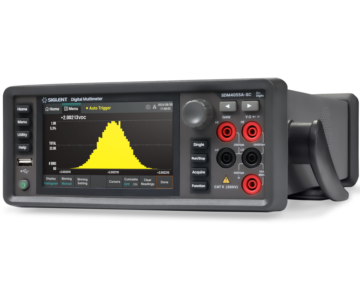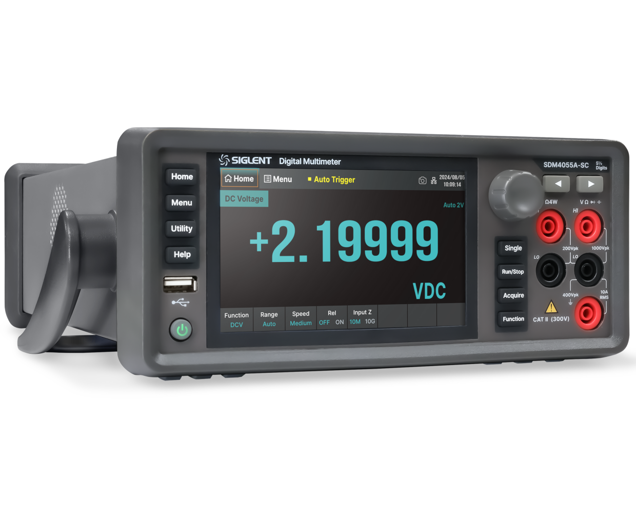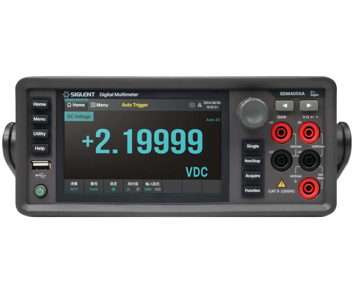 SDM4055A 系列5½ 双显示数字万用表,拥有最高4,800 rdgs/s的读数速率,涵盖11种测量项,6种数学运算功能,并搭载5英寸触摸屏及全新UI设计,是一款针对高精度、多功能、自动测量的用户需求而设计的产品。