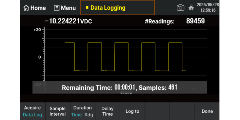 在生产和质量检测场景中,SDM4075A支持长达100小时的数据记录,0.1 s ~ 3600 s的记录间隔,最大可记录360M点到文件。且内置的统计与合格判定功能,能够快速识别不良品,为寿命测试、可靠性评估及环境应力实验提供支持。