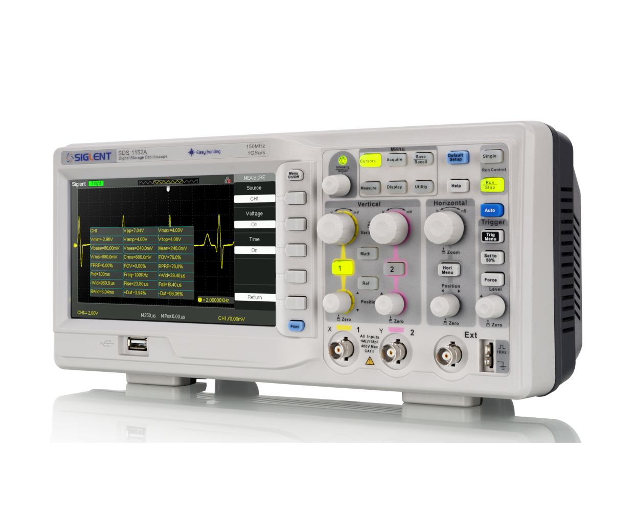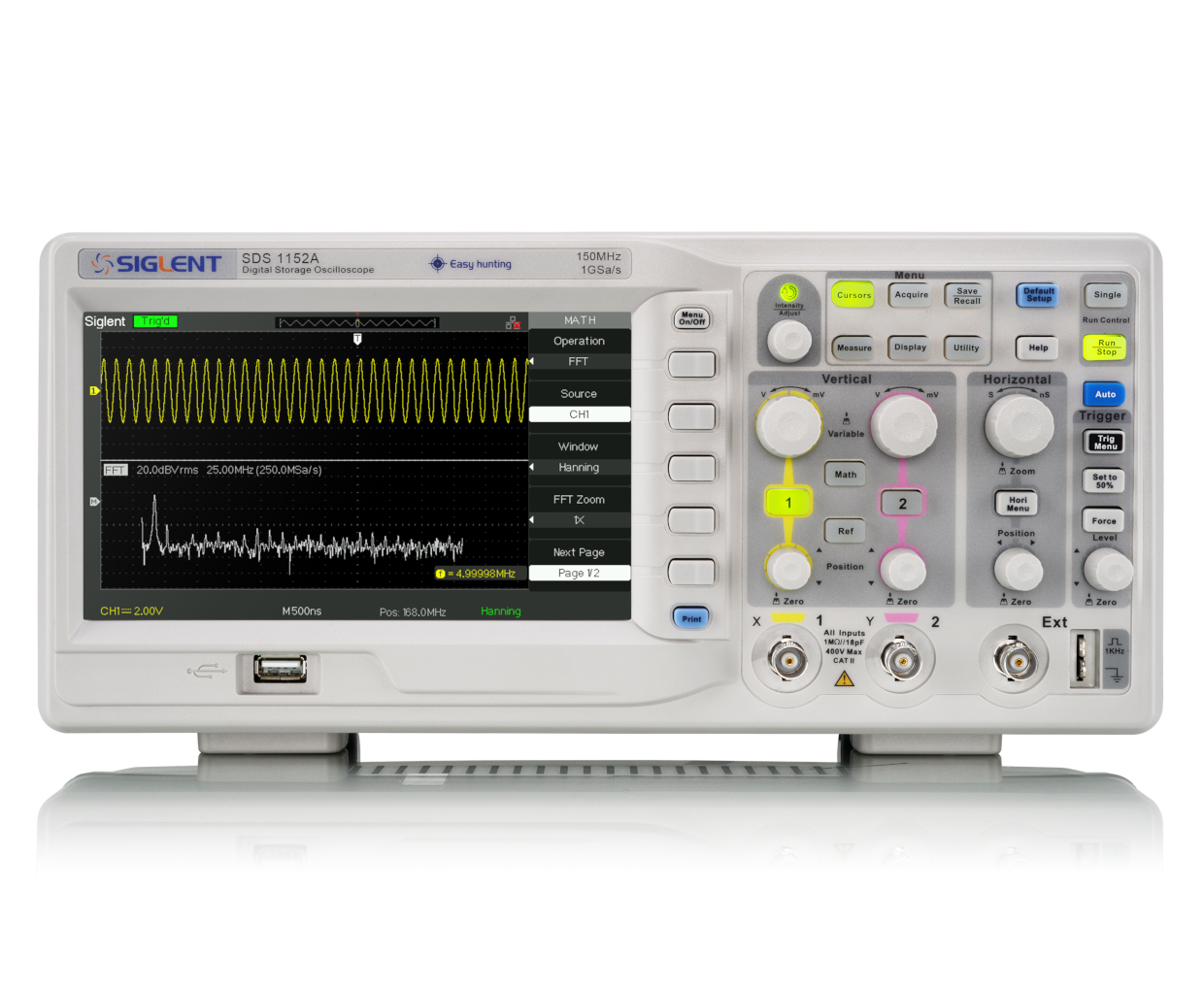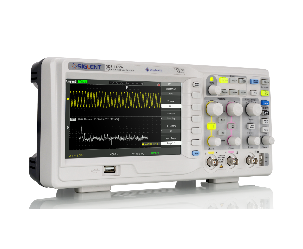 SDS1000A 系列还支持5种数学运算: +、-、*、/、FFT。测量和运算的结果、波形数据及截图可通过前面板的Print按键,一键保存到U盘。