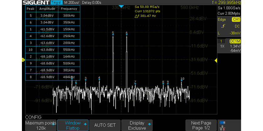 128k点FFT运算功能可对信号进行频域分析,从而对信号的信息作定量解释。