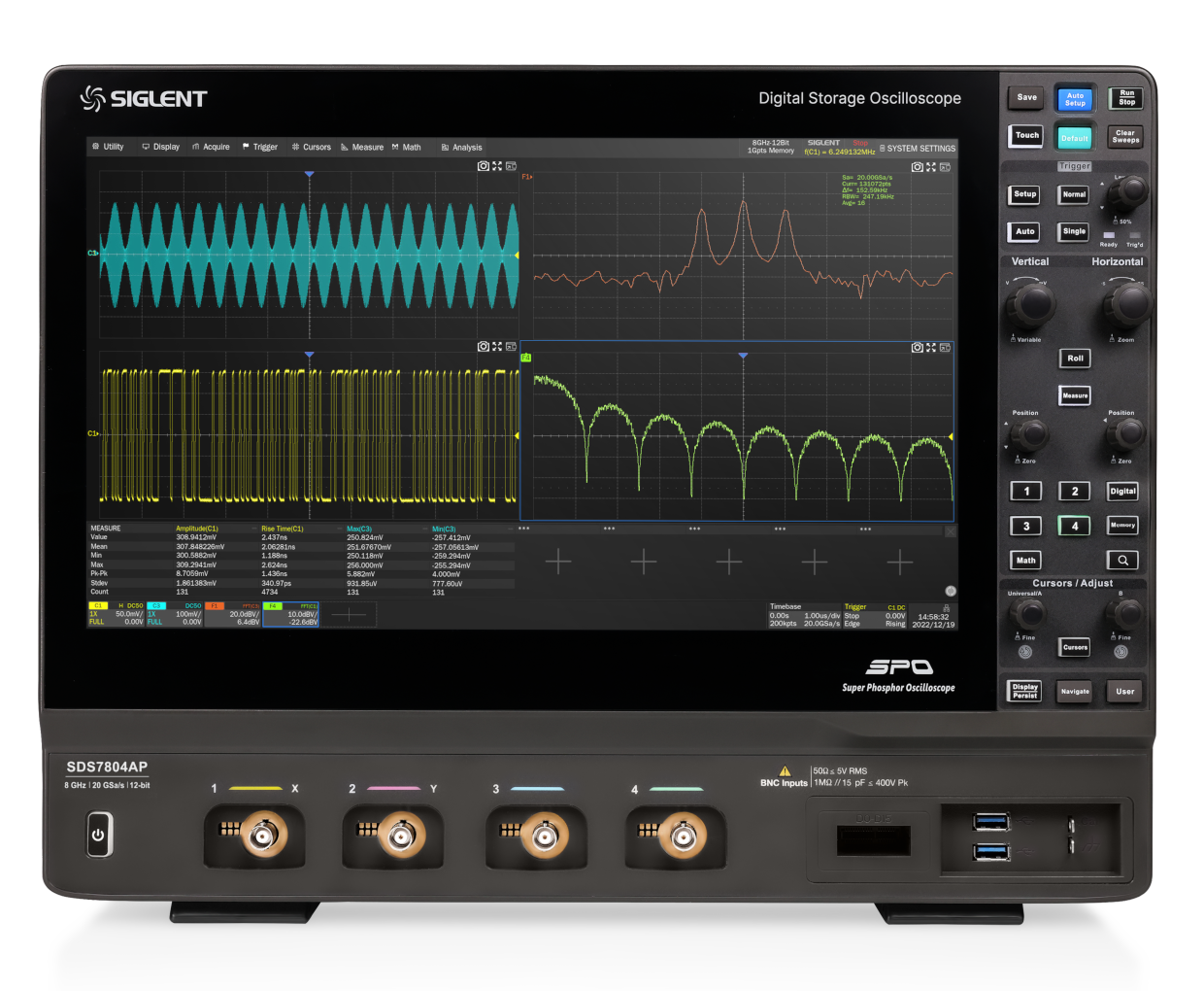 SDS7000A系列作为优米网官方下载苹果版新旗舰示波器产品,最高带宽提升至8GHz,上升时间仅为58ps,比4GHz带宽的示波器快了一倍以上,能支持测量MIPI-DPHY、DDR2/DDR3、USB2.0、2.5/5/10GBASE-T等信号,应用场景更加丰富;同时采用了全新15.6英寸高清触摸屏,支持分屏显示功能,带来全新的测量体验。