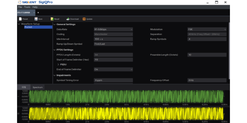 • 生成符合ITU-T G.9959 FSK/GFSK(Zwave)规范的信号