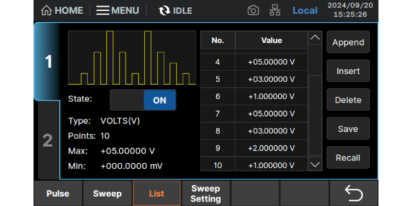- 支持直流、脉冲、扫描及列表输出,最小脉宽50μs