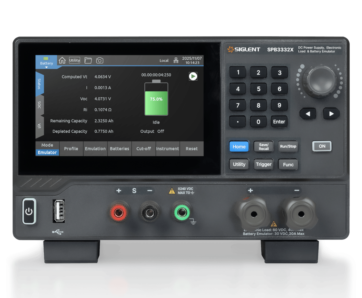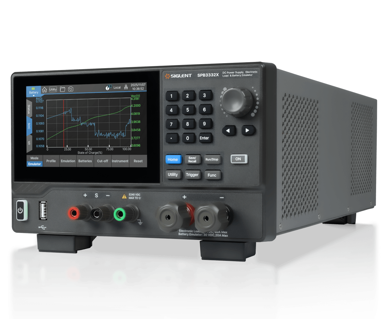 SPB3000X系列源载模拟器包含3类机型,分别为双通道电源SPB3100X,双通道负载SPB3200X,电池模拟器SPB3300X。SPB3100X 双通道电源采用开关 + 线性稳压方案,兼具低噪、快响应与宽范围、高效率等优势;SPB3200X 双通道电子负载支持波形显示记录、示波器视图及电池测试;SPB3300X 电池模拟器则具备独立源载、电池测试及模拟功能。