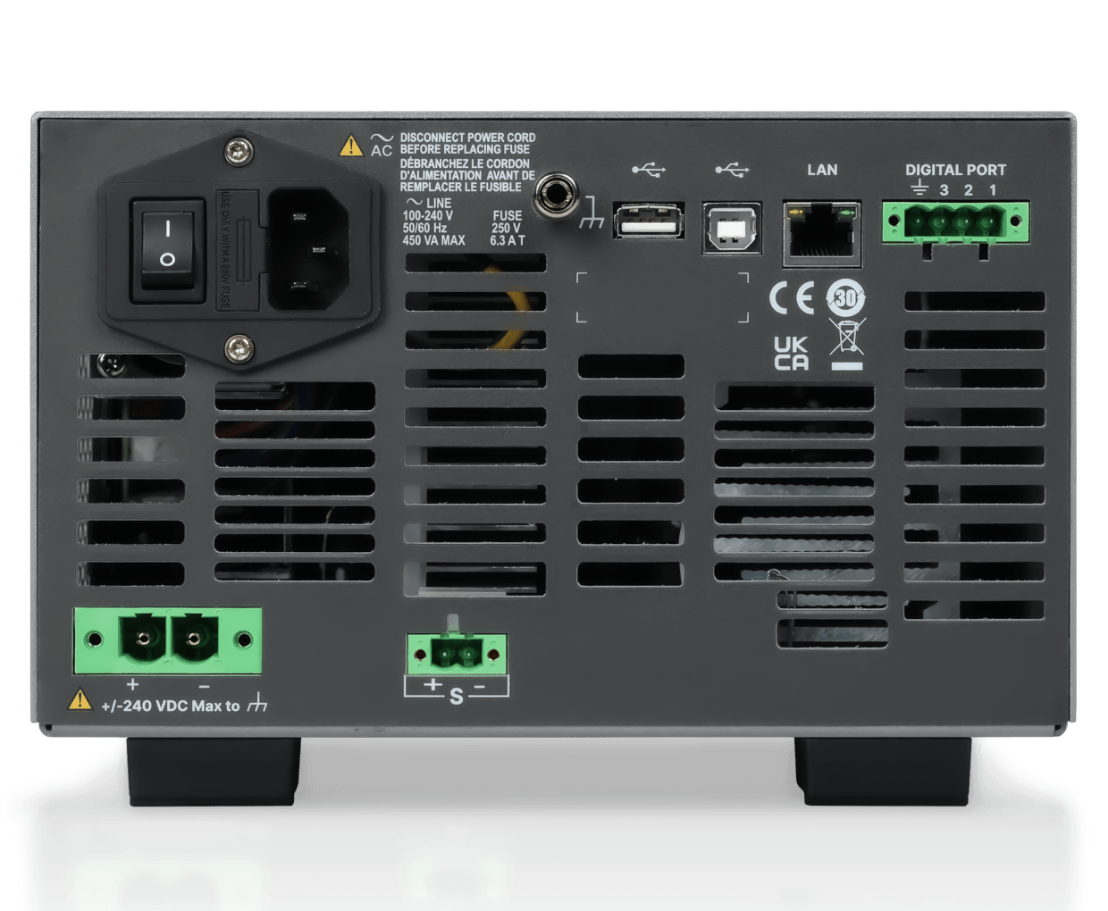 SPB3100X 双通道直流电源可输出 30V/20A/200W,具备自动量程切换能力,能在不同输出电压下实现输出电流最大化。此电源融合了开关电源与线性电源的核心优势,既拥有开关电源高效率、宽电压输入的特性,又实现低输出噪声与快速响应速度,搭配优异的设定和回读精度,可精准模拟细微的电压或电流变化,尤其能高精度捕捉小电流信号,完全适配各类精准供电需求。