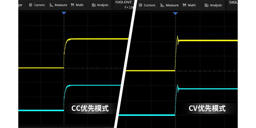 CC优先模式下,使电源输出打开瞬间优先运行在CC模式,有效限制了浪涌电流和过冲电压的发生。