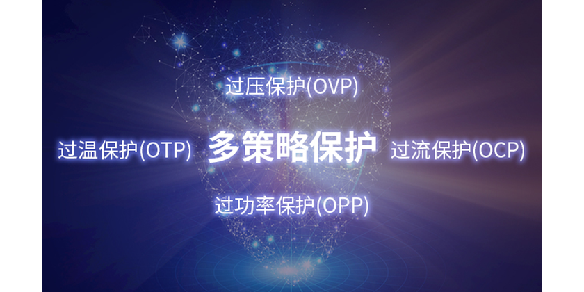过流保护(OCP)、过压保护(OVP)、过温度保护(OTP),过功率保护(OPP)
