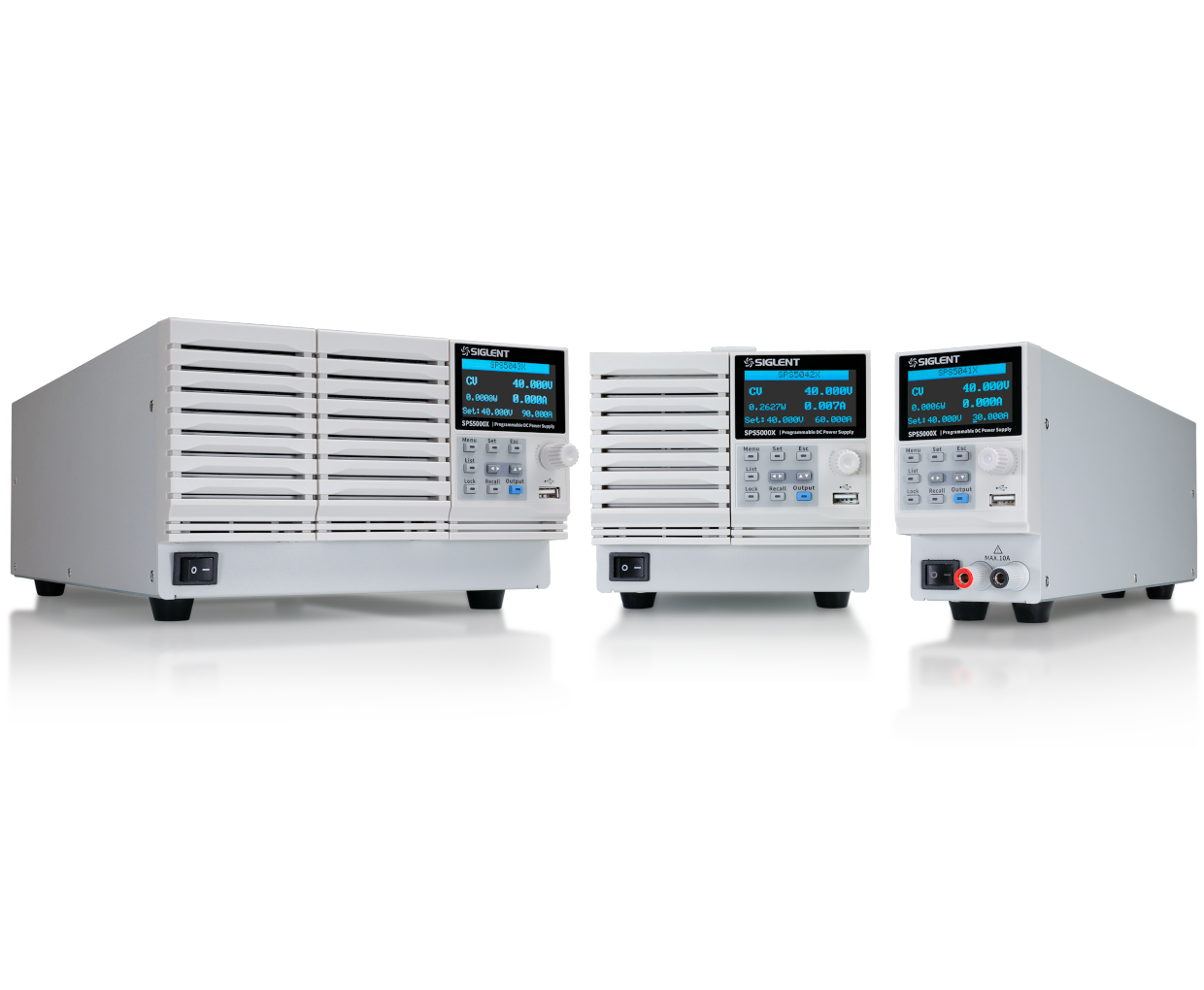 SPS5000X系列包含多种输出电压(40 V, 50 V, 80 V,160 V)和电流组合(7.5 A~90 A),额定输出功率包含180 W,360 W,720 W,1080 W。单通道型号可支持最多2台串联,3台并联,双通道和三通道型号也可以支持通道间的串并联。