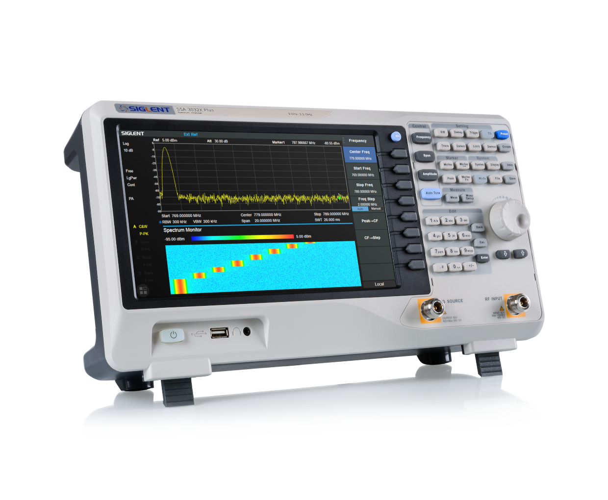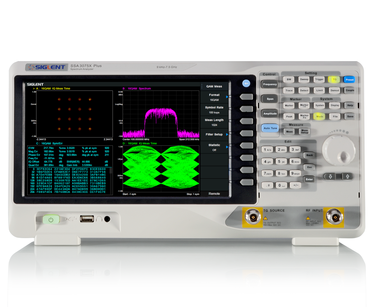 作为SSA3000X的升级版,SSA3000X Plus的频率范围升级至9 kHz至7.5 GHz,增强了性能与功能。其分辨率带宽可达1 Hz至3 MHz,相位噪声优异,适用于多种复杂信号分析场景,是性价比极高的选择。