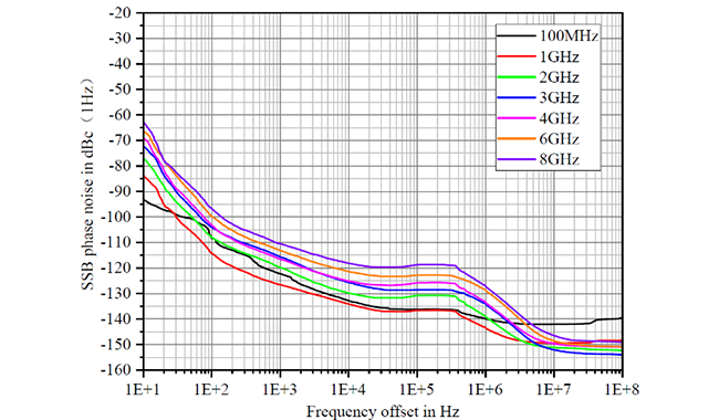 - 相位噪声<-132 dBc/Hz@1 GHz,偏移10 kHz(典型值)