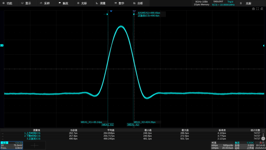 得益于高数据率,SDG8000A 可输出脉宽低至250 ps的窄脉冲,可满足芯片、汽车行业等大多数脉冲测试场景需求。与此同时,SDG8000A还搭载了EasyPulse技术,在输出方波与脉冲信号时,可实现极低抖动,同时支持脉宽、上升/下降沿的精细调节,满足对高速数字信号、高精度脉冲的严格需求。